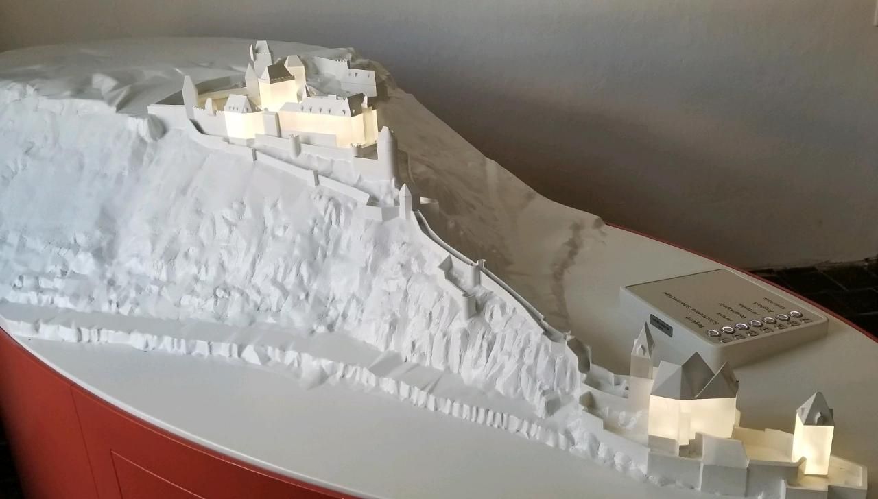 Thursday morning we packed up and headed to the castle in Passau on the other (north) side of the Danube. We found the road up to the castle – the very steep road. I could ride up (if barely). But Linda had no hope of riding up that incline. So we walked. I realized even walking Linda struggled, with me pulling (or in this case pushing) ahead. So I left my bike by the side of the road and walked back down. The rest of the ascent I pushed one bicycle up 50 feet, only to walk back to the other. Repeat.