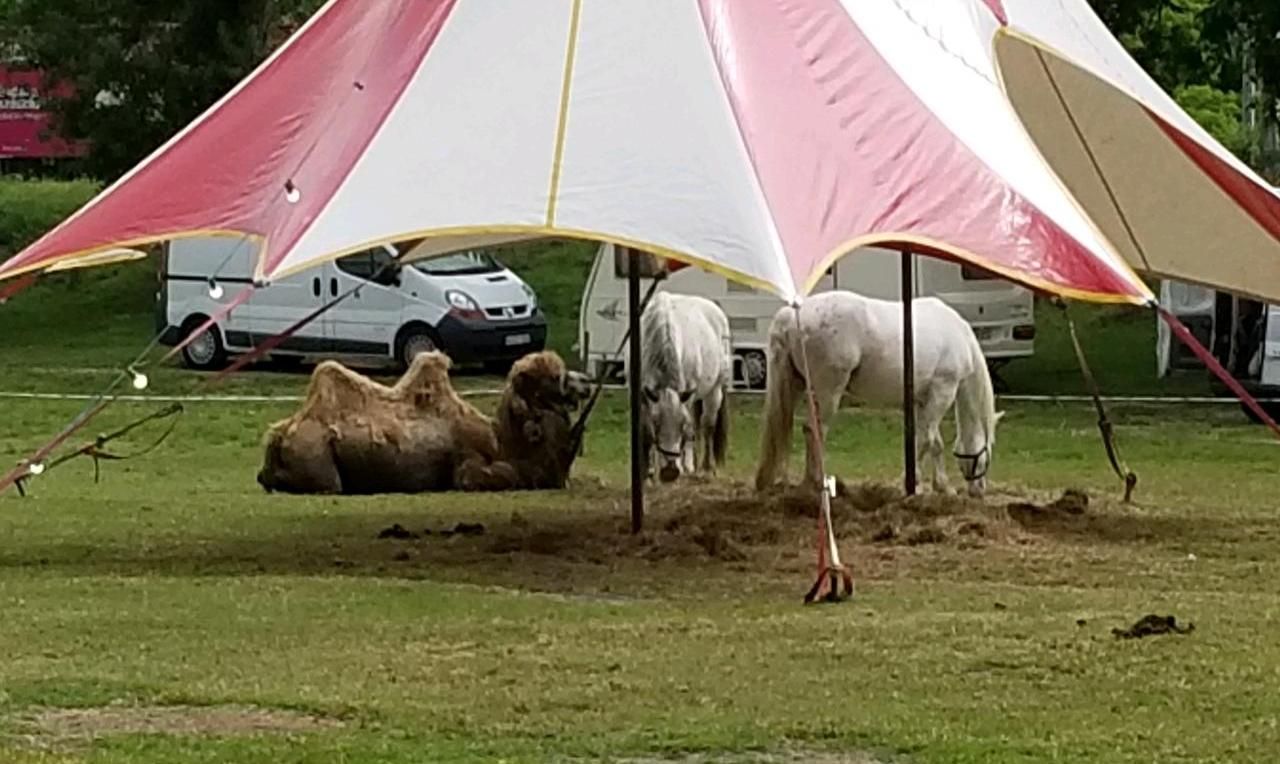 Thursday I ended up at a beach without Linda. Friday I saw a camel (and a llama) without Linda as I passed by a circus. I don’t do these things on purpose, but she’ll be sad she missed them.