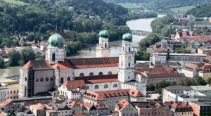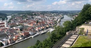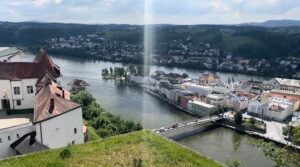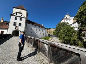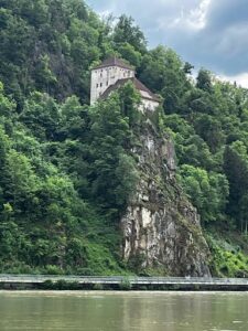 Catching up after the holiday. You didn’t know it was a holiday? Thursday was Ascension Day, so we celebrated it by ascending several hills! First, we visited the castle in Passau, on the German-Austrian border. It was a long way up and I swear it must have been about 20-30 degree incline. We pushed our bikes up. Well, I tried pushing mine, but it became clear we’d never make it to the top, so Rick would push his up a ways, come down, push mine up a ways, switch back to his, etc. I was in charge of getting myself up the hill. 😁