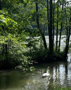 We followed a lovely section of the path, with trees shading the path, stone walls and wildflowers beside us. And the river to the left (north) of us. And occasional wildlife.