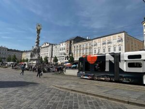 The old central city of Linz is very pretty, with a large plaza. It also has street cars that run frequently and make it easy to get around just by hopping on and off. We purchased tickets that let us use the train all day, but no one ever asked you to see them. They do have signs posted that there is a 105 euro fine if you don’t have a ticket. But again, no one ever checked.