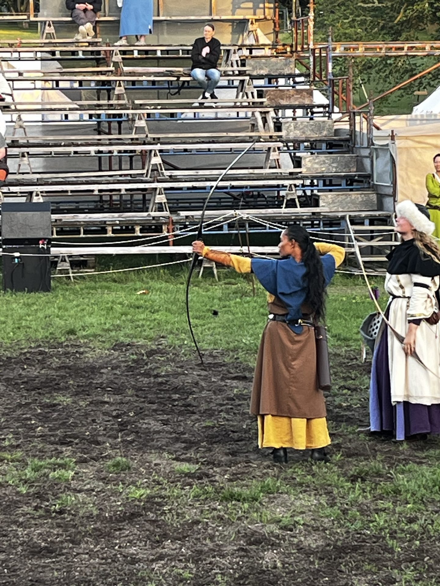 There were two teams of 3 knights on horseback (and a host of others folks, entertainers, rangers, archers, speakers, the royal family of the event, etc.) This last guy was the champion. What I loved was that each of the two teams included a woman. Here is one of them.