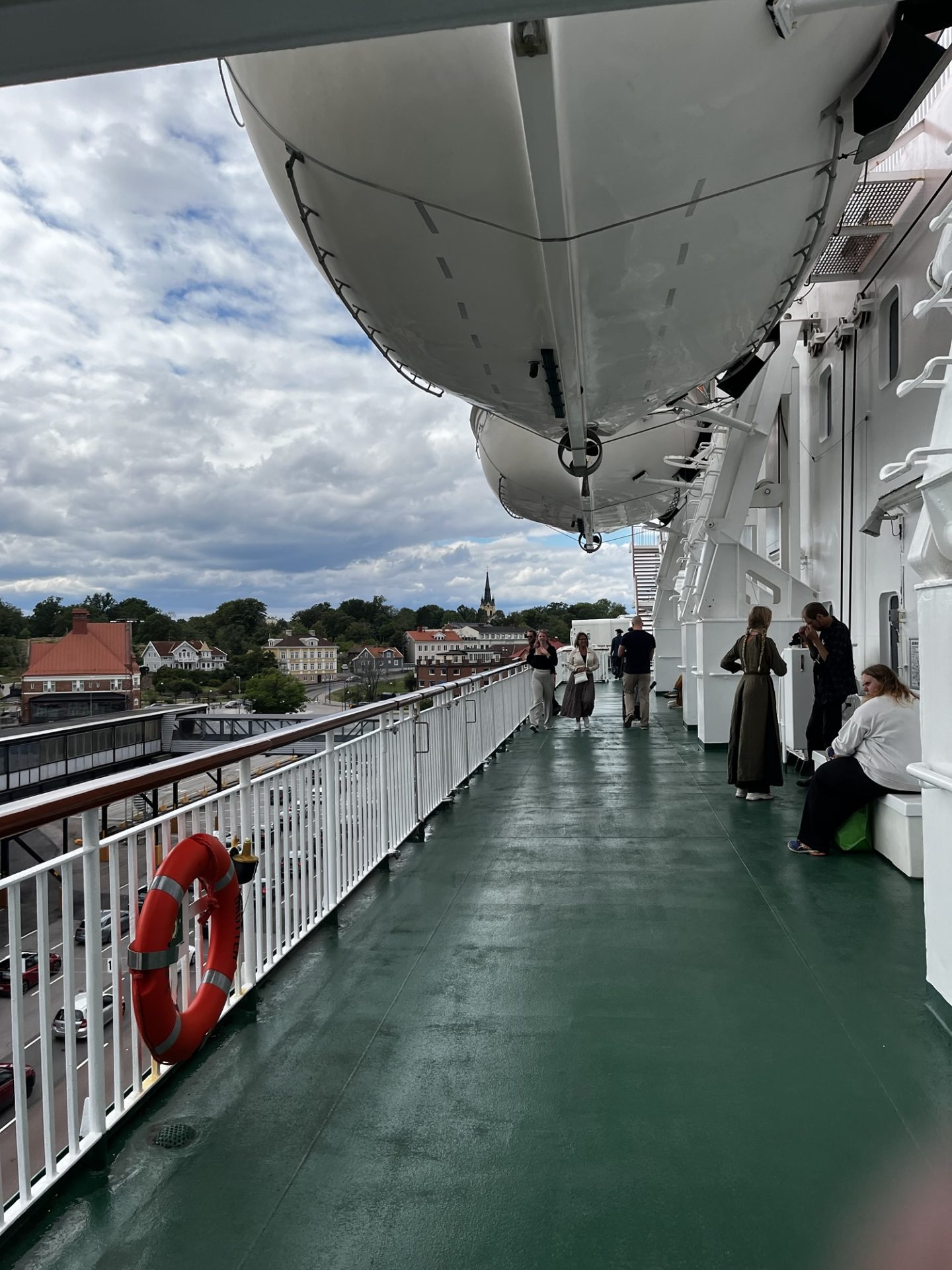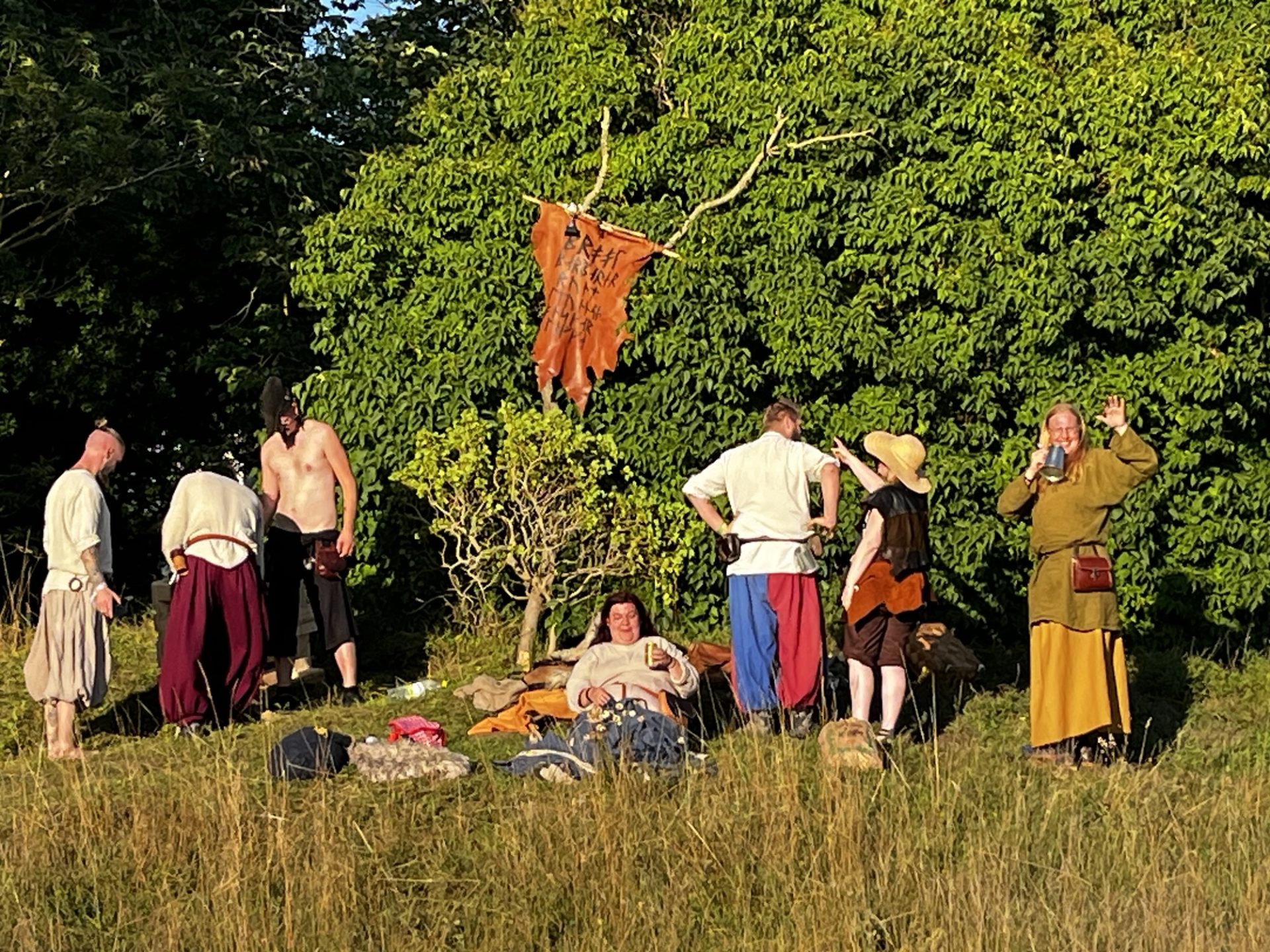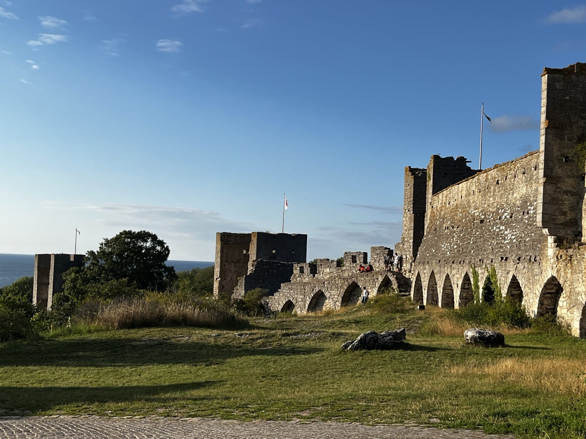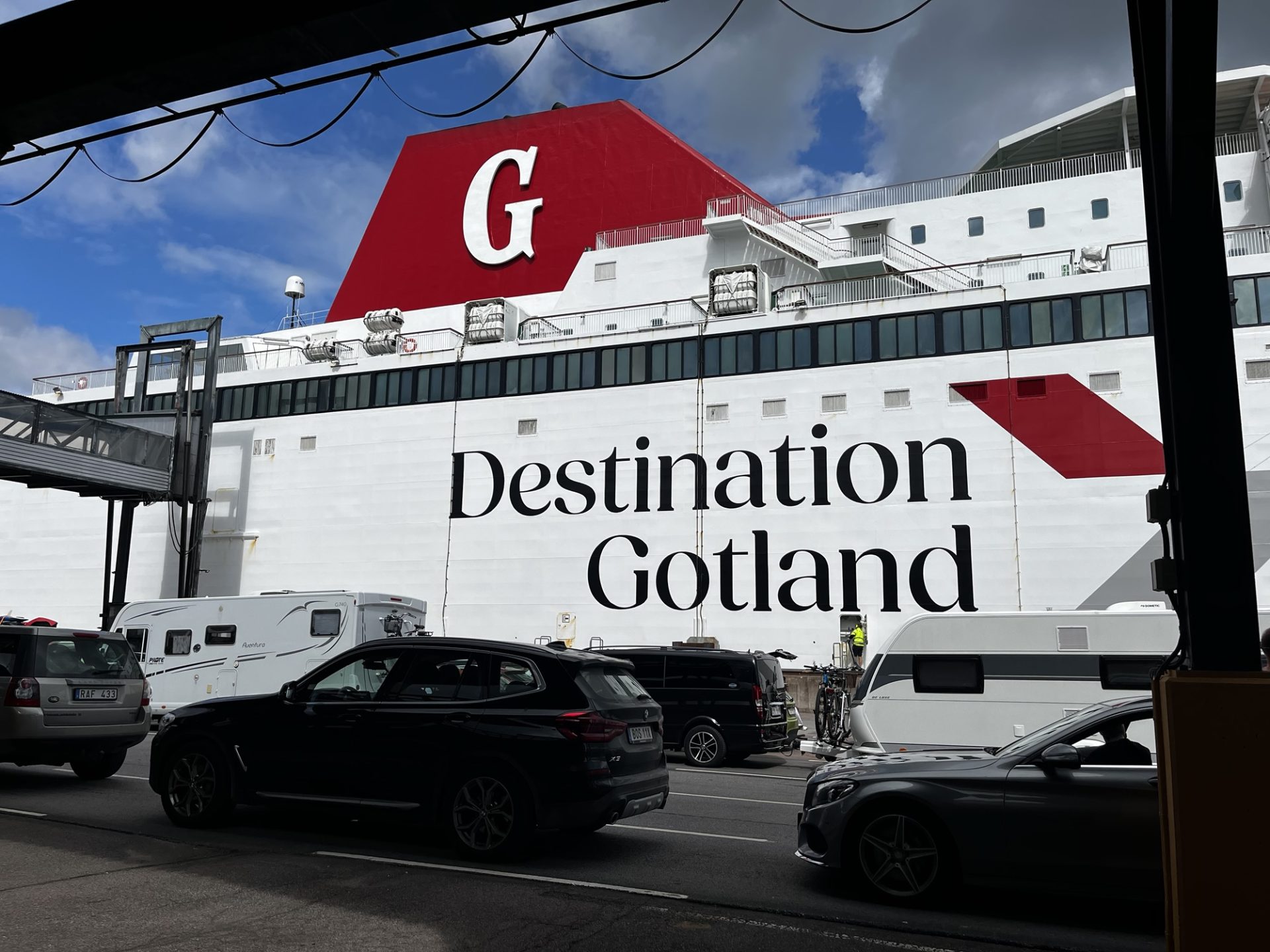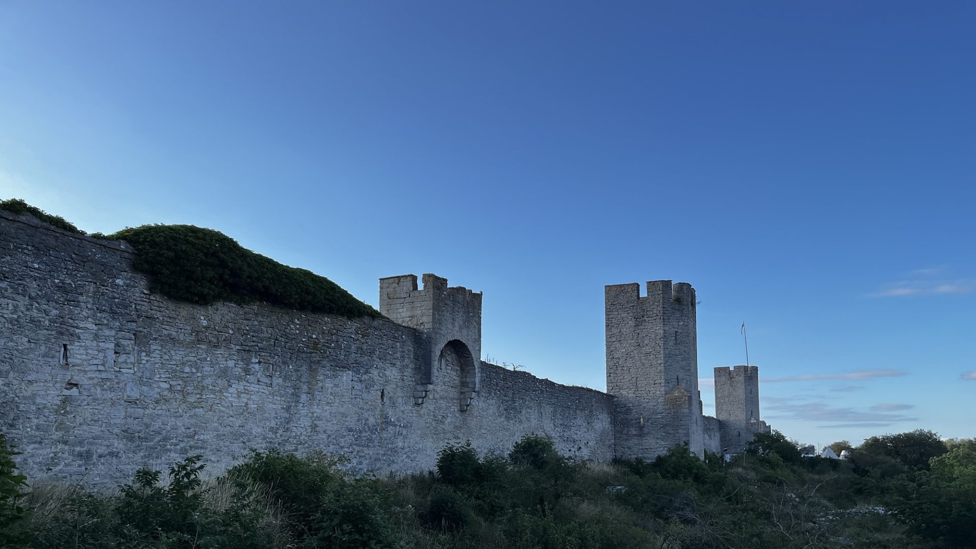 We are here for a medieval festival in honor of the battle of Visby in 1361. The Danish king invaded Gotland and slaughtered about half the males on the island. It happened in a hot summer and they left the dead on the field and eventually buried them in mass graves, leaving their armor on the bodies. When Rick was in the SCA, he made armor based off the archeological dig from that battle. There are reenactments of the Battles of Visby and Masterby. We plan to see the Masterby reenactment.