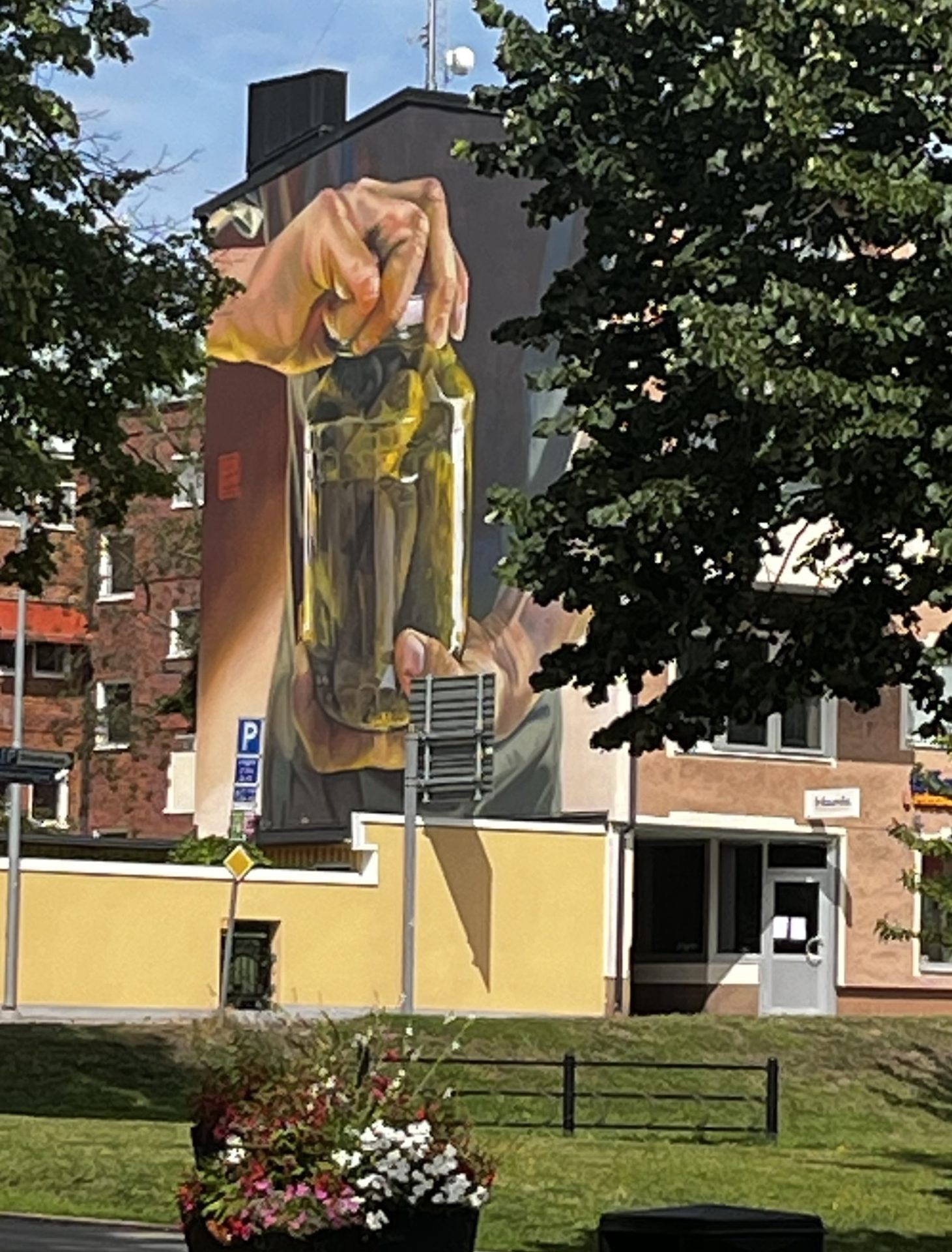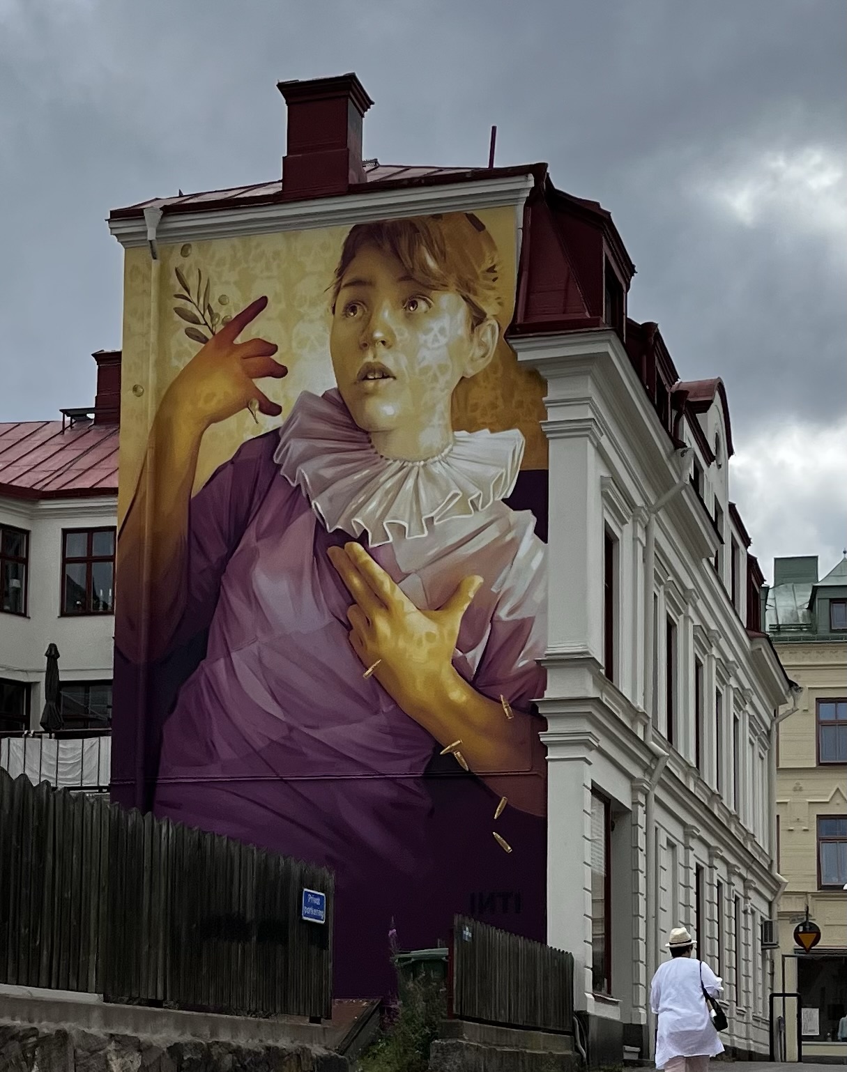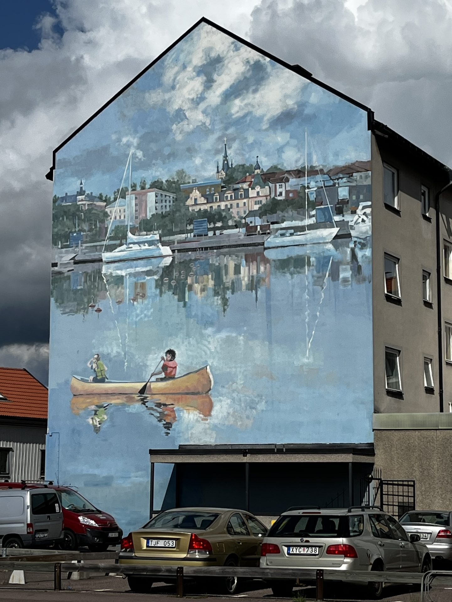 Oskarshamn has hired various artists to paint murals on the sides of buildings.