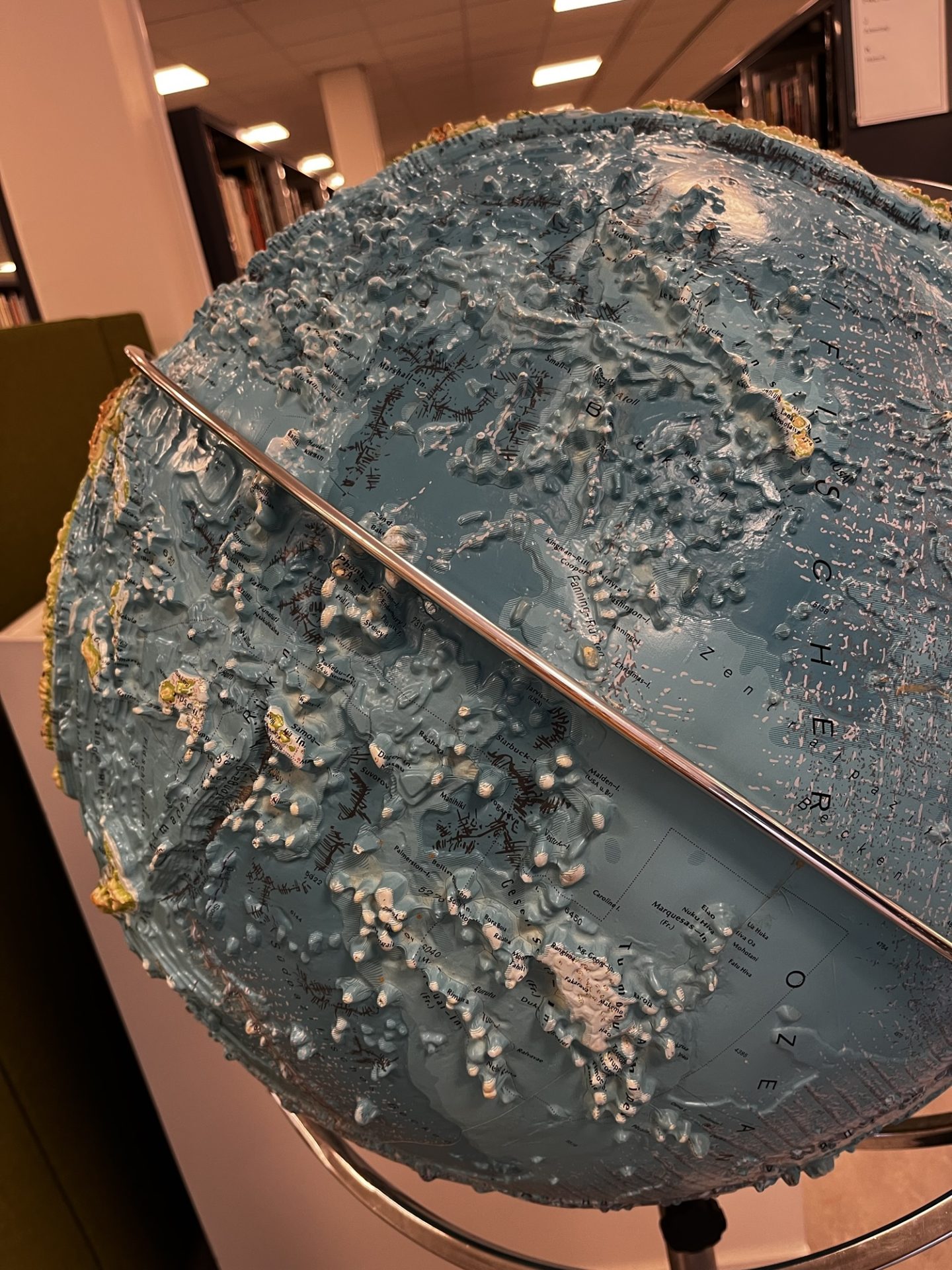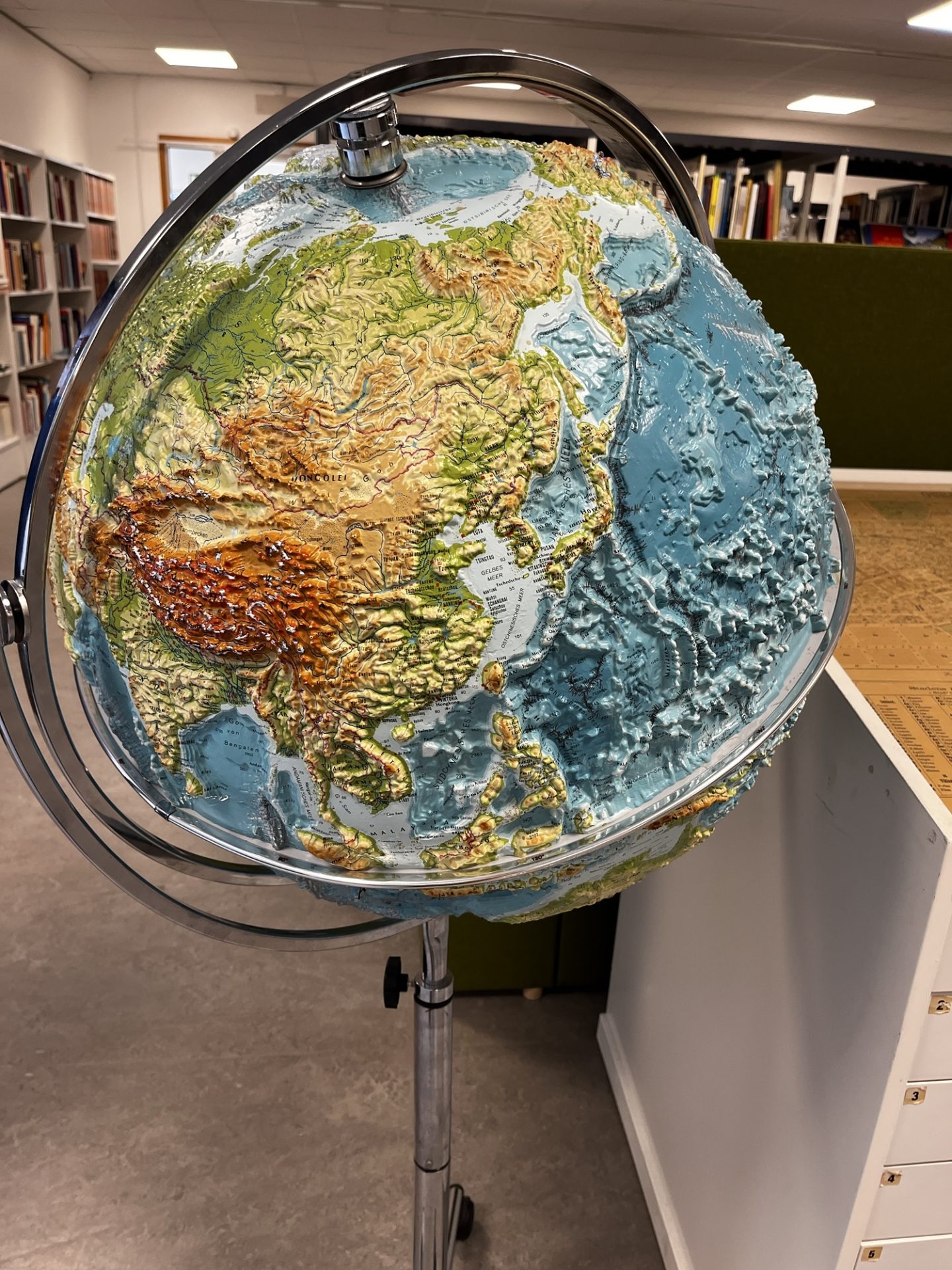 Then to the library where we saw the coolest globe ever! Has full relief to show mountains, including under the oceans! We want one, but they aren’t made any more.