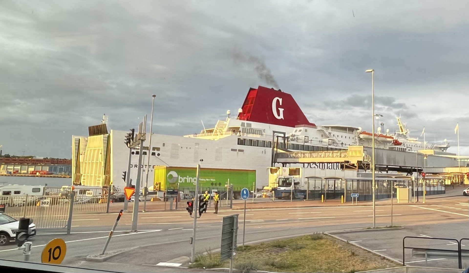 We ate Greek food at his restaurant tonight while watching the huge Gotland ferry unload and begin reloading. This ferry holds 500 cars! Looks like it is a key way stuff gets to and from the island. For instance, we saw big trash trucks leaving the ferry. And there were 3 farm trackers that got on.